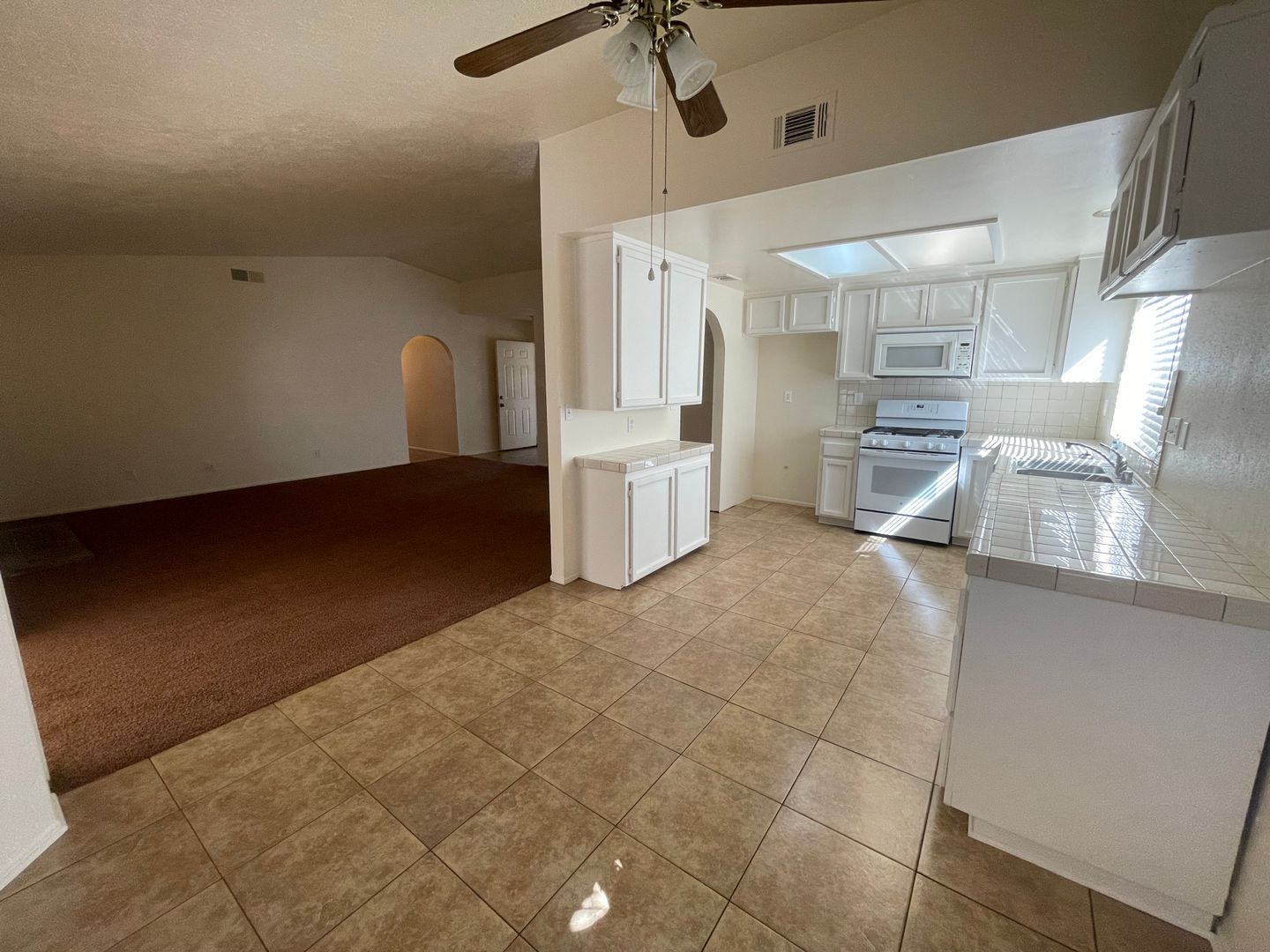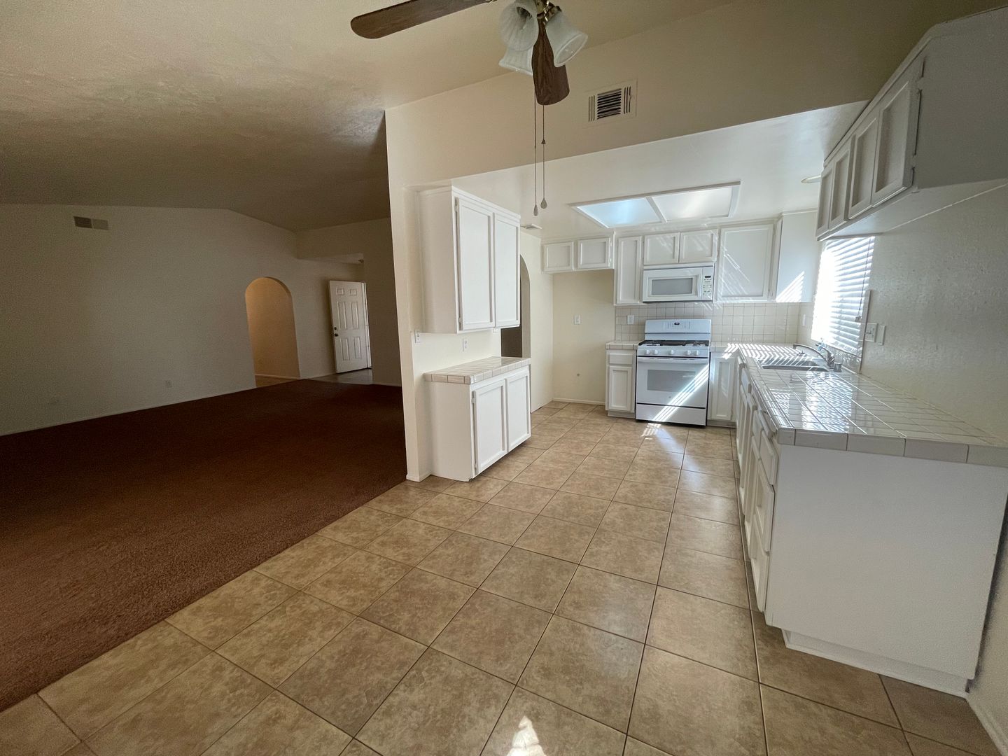 Hesperia-Refurbished- 3 Bedrooms, 2 Bathrooms + Den or Office, New Paint, New Carpet, New Tile Floor, New Window Coverings, New Appliances, Large Open Family Room with Fireplace. Family Room Opens to a Large Den, Office or Game Room, Large Spacious Main Bedroom with Double Closets and Step up Shower and a separate Vanity Counter and Sink, Hall Bathroom has a Tub, Attached 2 Car Garage with garage opener, Laundry Hookups are in the Garage, Large Open Country Kitchen with Lots of Tiled Counter Space and Cabinets, New Appliances and built in Microwave, Stainless Steel Kitchen Sink, Kitchen has a Large Open Dining Area and Slider that goes to the Back Porch, Security screen door at the front of the house and at the back from the Den to the Back Porch, Long Hallway with Lots of Linen Cabinets and Closet Space, Spacious Guest Bedrooms, Close to Freeway, Schools and Shopping.