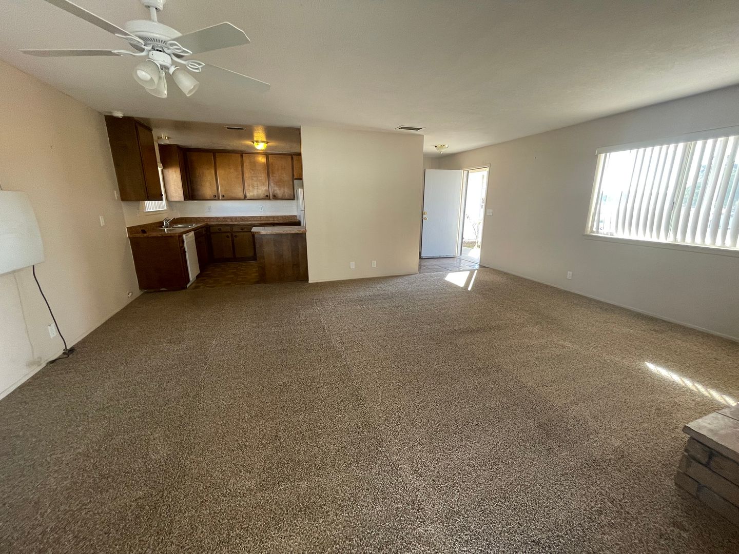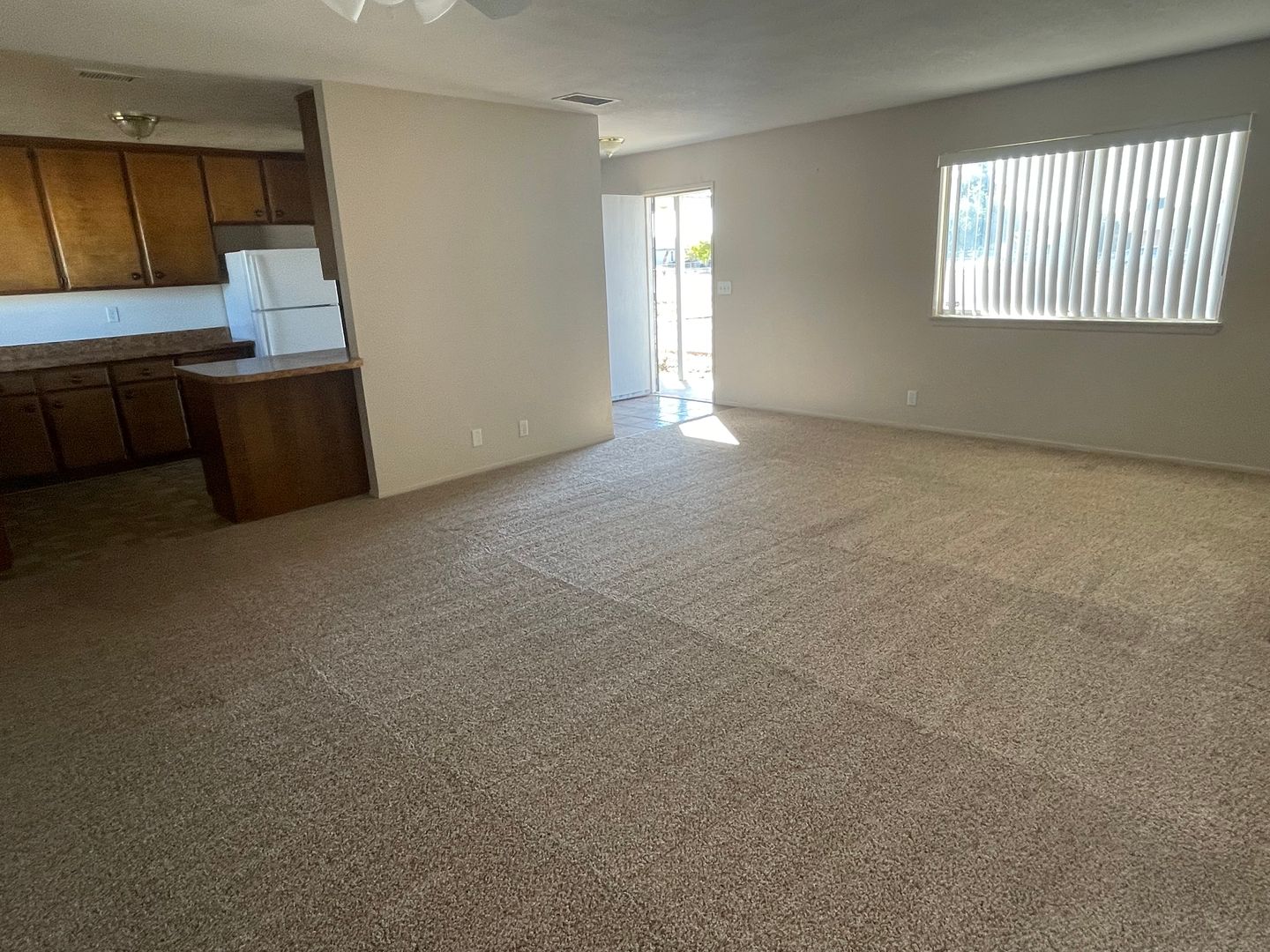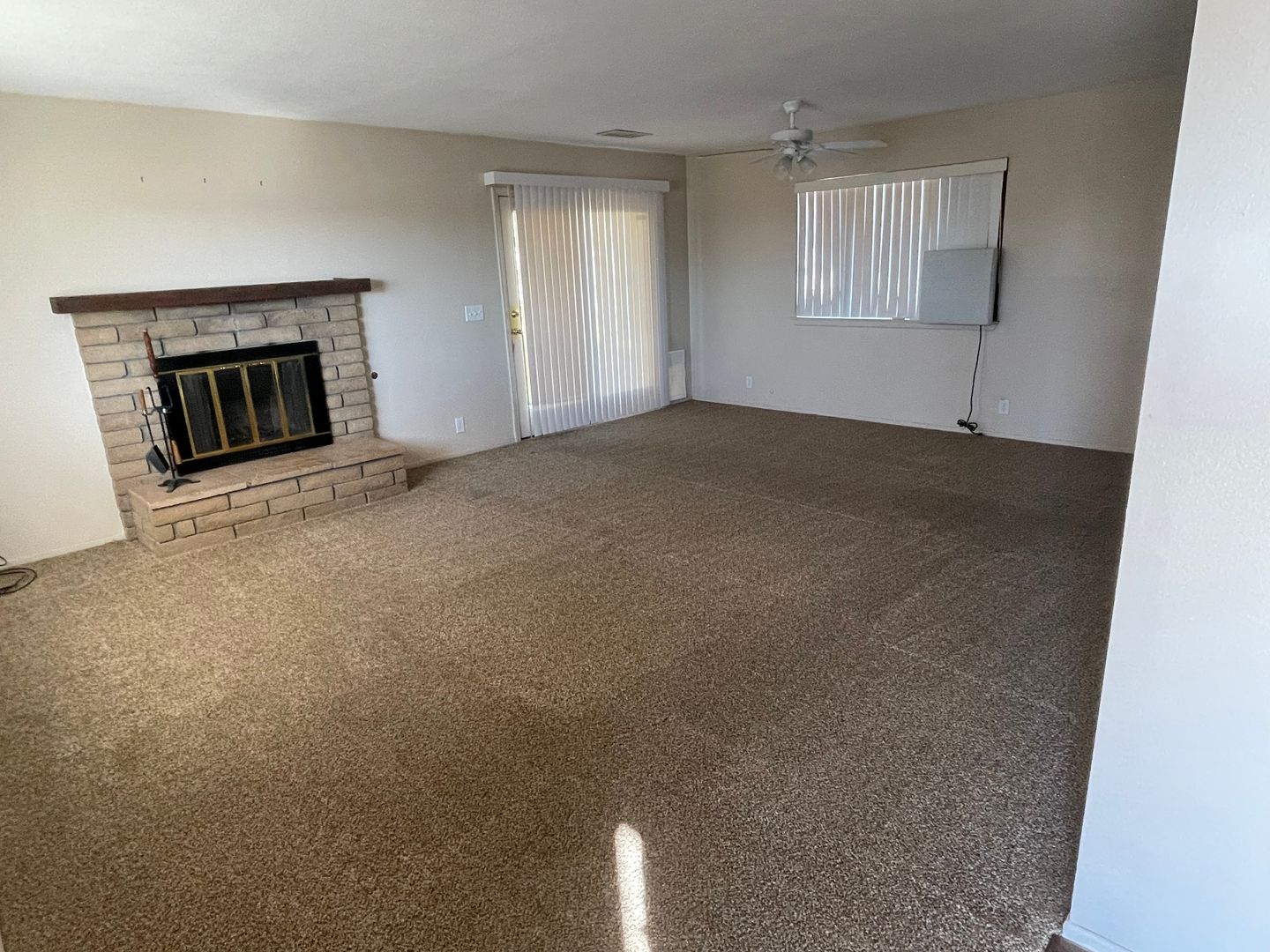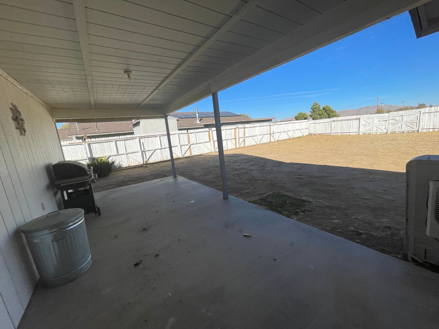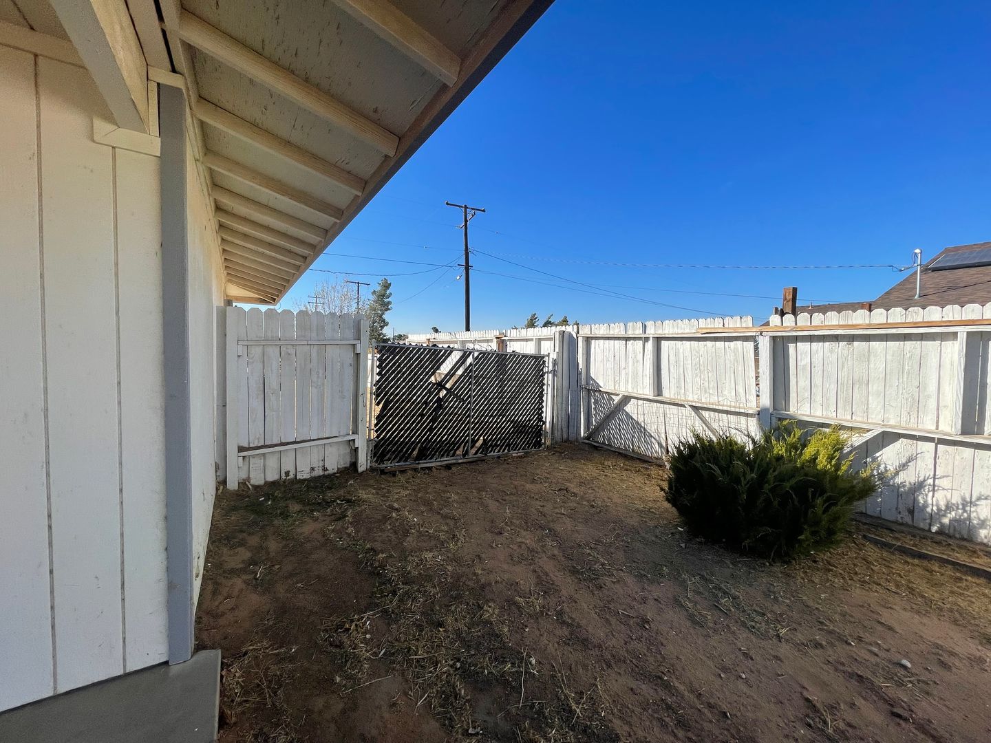 Apple Valley-Cute Starter Home- 2 Bedrooms, 2 Bathrooms, All Appliances Included, Fully Fenced, Large Front & Back Yards, Large Open Livingroom and Dining Room, Lots of Kitchen Cabinets and large Pantry, Spacious hall closet and linen closet, Covered patio in back and Cute siting porch in front. Attached 2 car garage with three access doors, Central heat and air and wall cooler in dining room, Ceiling Fans. Close to shopping, Close to Schools. For more information or to schedule a viewing, Please contact Maria De La Torre at (760) 242-6086