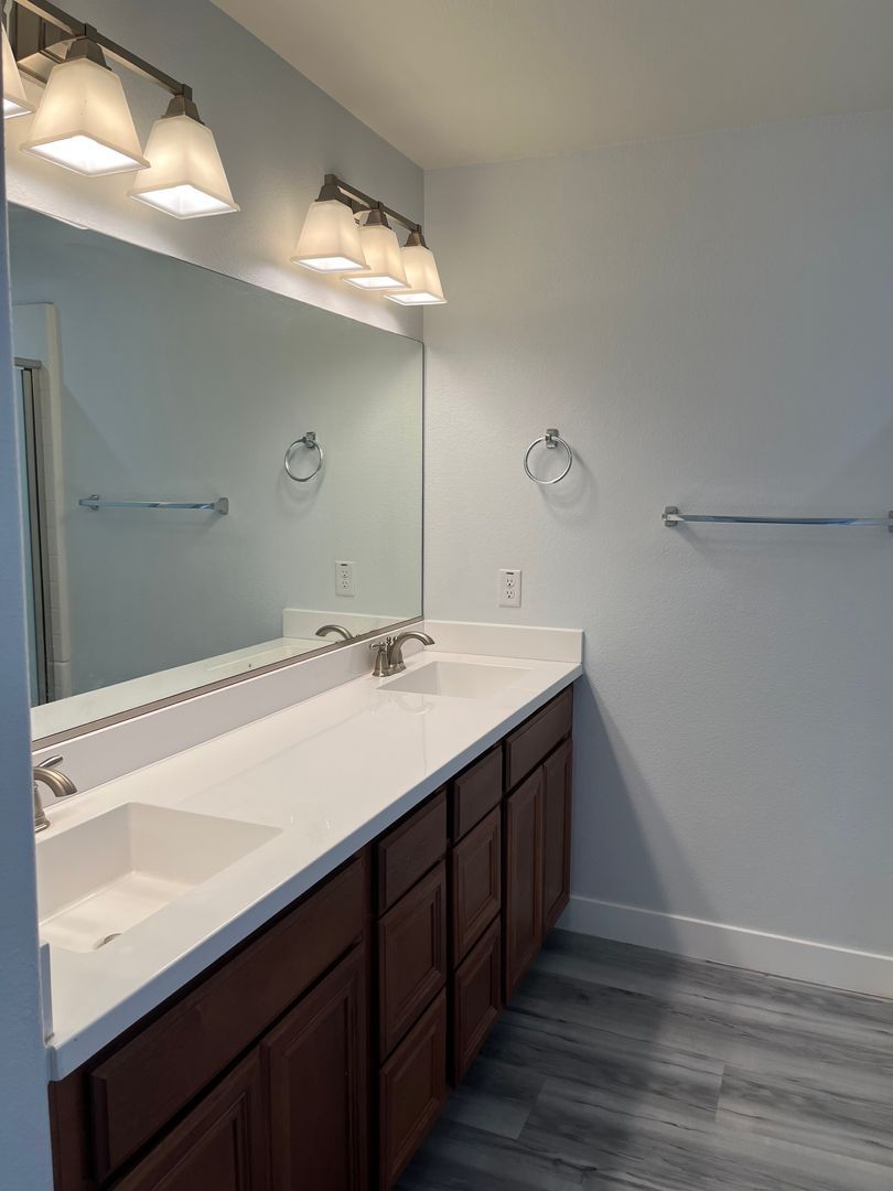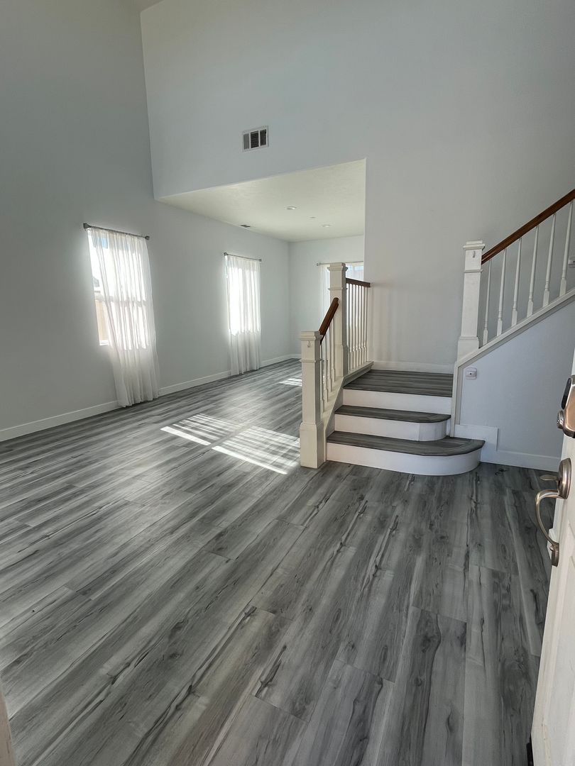 Available Now! This 4-bedroom, 3-full-bath, 3-car garage home features 2 living rooms and an upstairs bonus lounge. The master bedroom includes an additional lounge or office nook, while the other side of the house has a junior master bedroom. The living area boasts vaulted ceilings, and the kitchen is equipped with a stainless steel range/hood, microwave, double ovens, dishwasher, and a large walk-in pantry. The home also has washer/dryer connections and luxury vinyl planks throughout.
