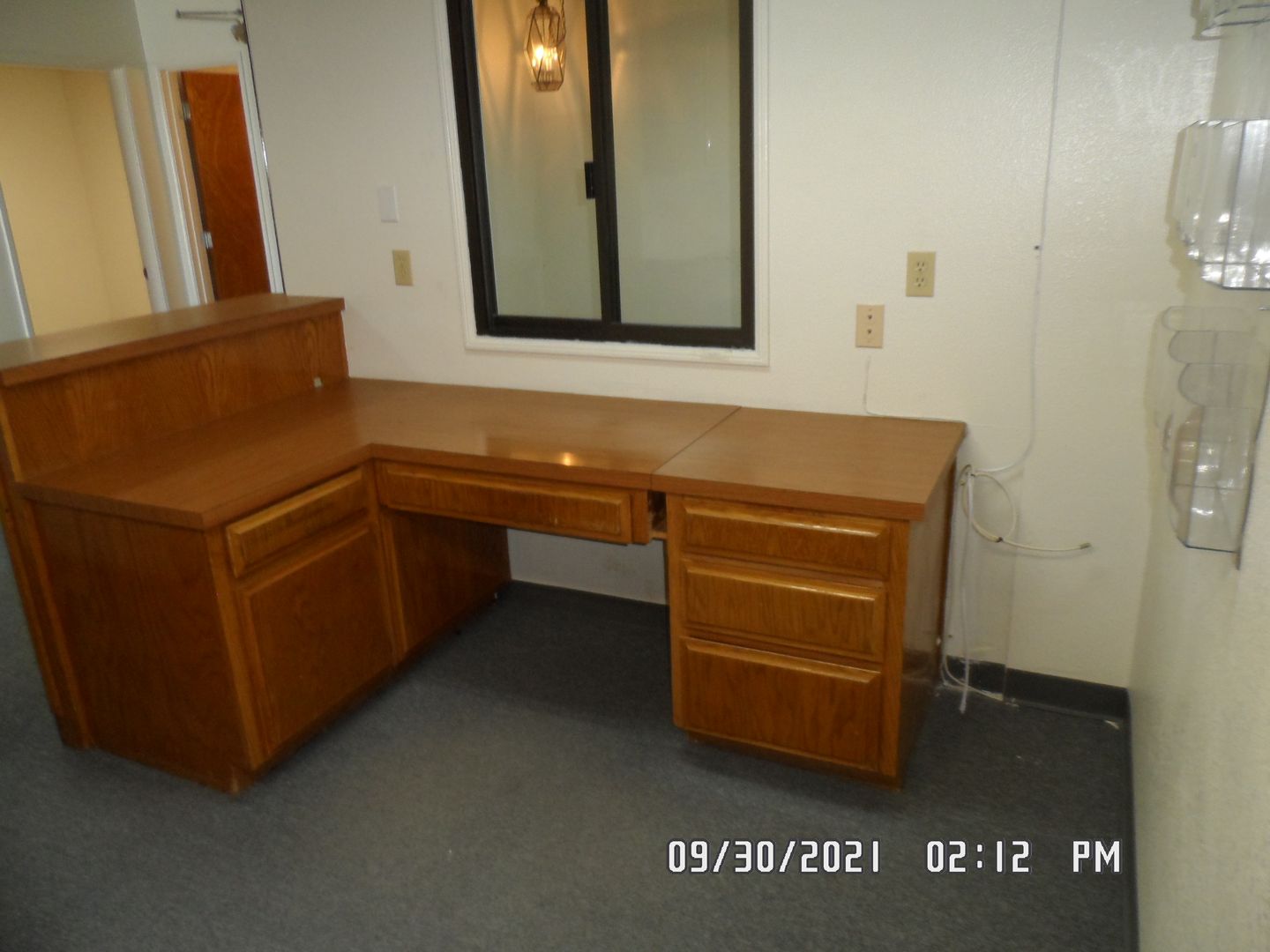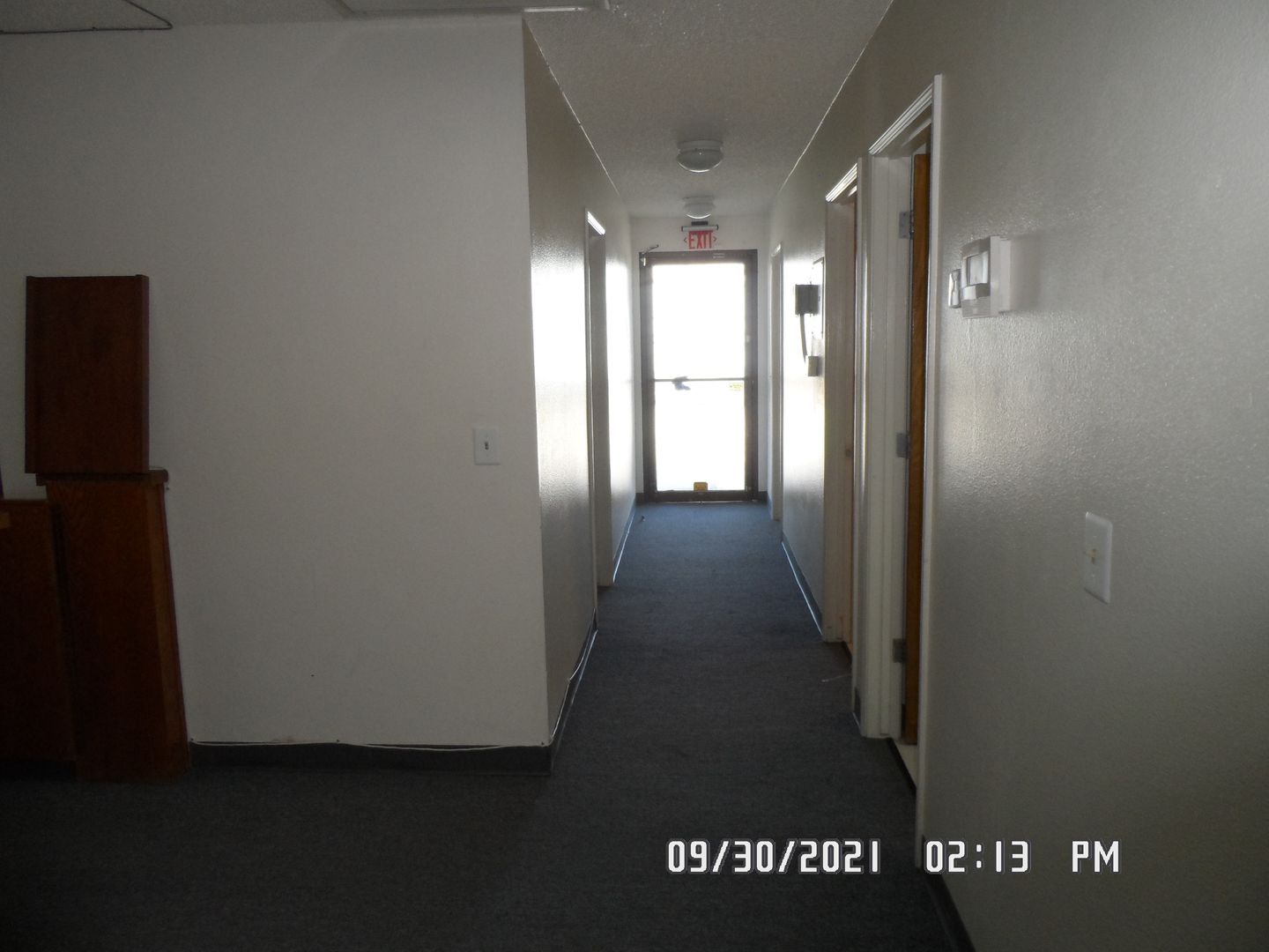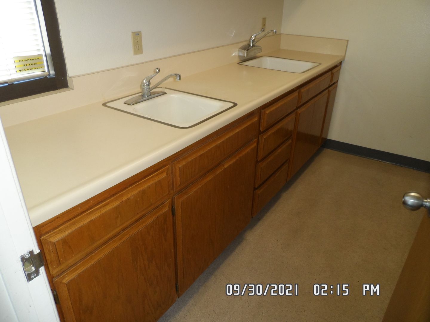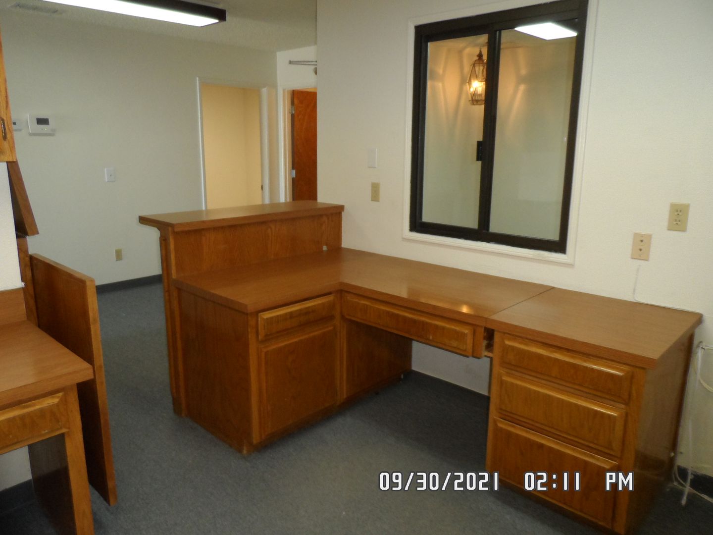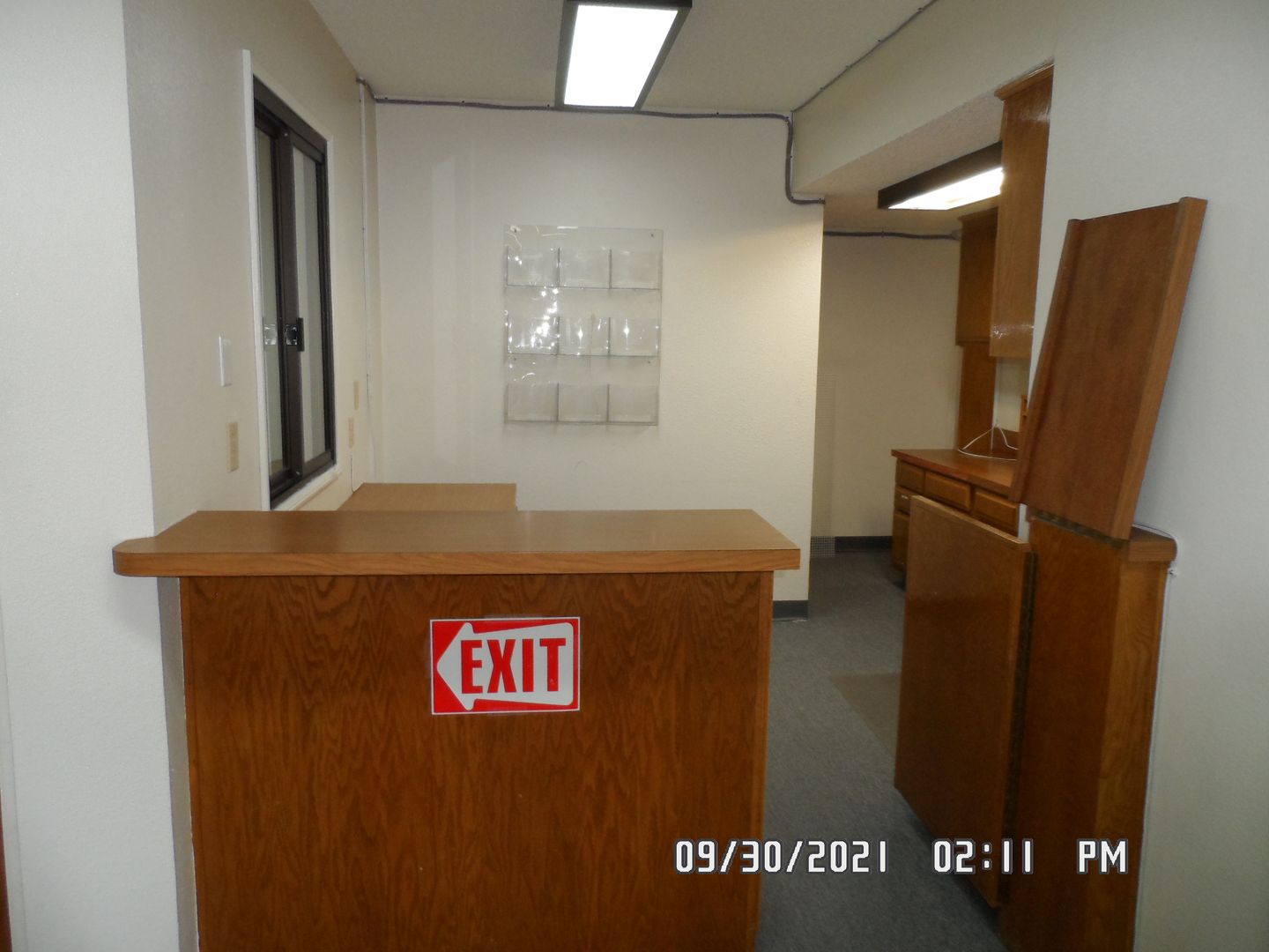 Office Medical Suite; Front lobby waiting area, 1/2 bathroom for suite, 4 exam rooms has built in cabinet & sink, utility work room has 3 sinks, lower & upper built in cabinet on both sides, private office has built in cabinets with book shelfs & private 1/2 bathroom, reception station has service window, built in desk, lots of file & supply cabinets, phone equipment room has built in cabinets. lots on parking in front or in dirt lot next to building.