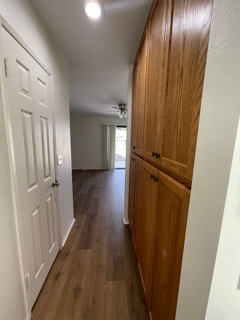 Welcome to this charming 2 bedroom, 2 bathroom home located in the desirable gated community of Apple Valley, CA. This home features new laminate floors, ceiling fans throughout, central air & heat, and all appliances included. Enjoy the convenience of an indoor laundry room, lots of kitchen cabinets, and plenty of counter space. The spacious bedrooms offer lots of storage and linen closets. The formal dining room and separate breakfast nook provide ample space for entertaining. Step outside to the lattice covered patios and fenced yard surrounded by lush landscaping maintained by a gardener. This community offers a pool, community center, and is conveniently located near shopping and restaurants. With new interior paint and window coverings, this home is move-in ready for you to make it your own.