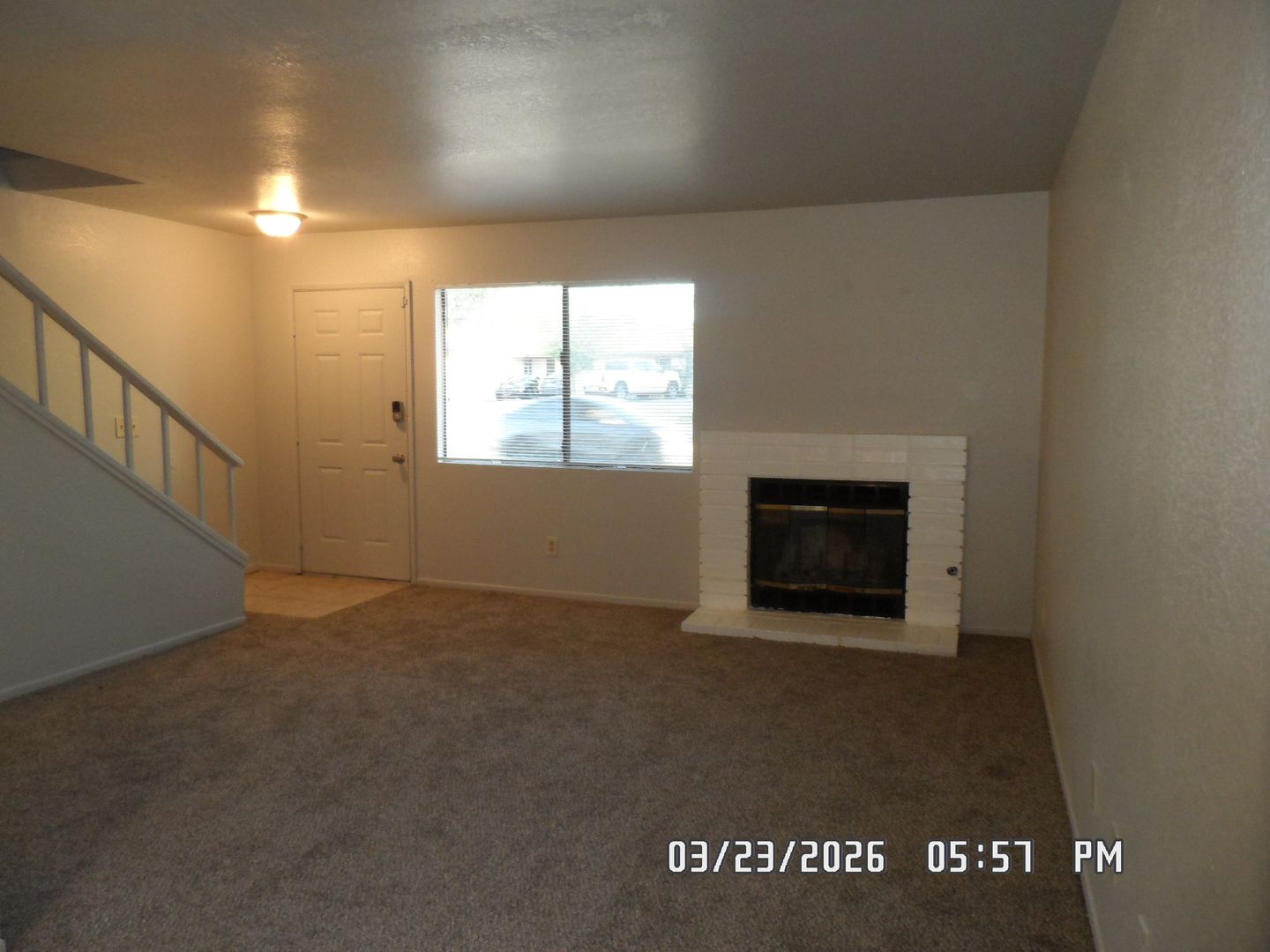 2 bedroom, 1.5 bathrooms, tri-plex, approx. 936 sq. ft., fenced backyard, 1 car garage, laundry hookups in the garage, fresh interior two-tone paint, carpet & padding, both bedrooms are upstairs with full bathroom, 1/2 bathroom downstairs, living room dining area combination, central air conditioning, forced air heating.