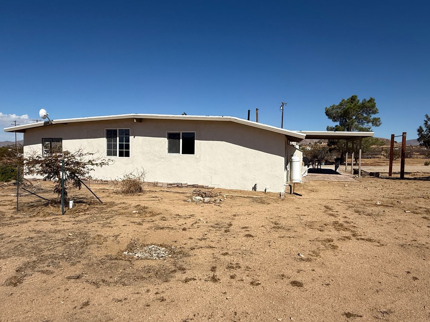 Charming 3 bedroom home in Apple Valley- Horse Property, South of Thunderbird Ranches, 2.5 Acres Fully Fenced, Secluded property with view of the mountains, New Paint, New Roof, New Carport, Large Livingroom with wood burning stove, Tile floors throughout and carpet in guest bedrooms, Well water, Kitchen has Reverse Osmosis Water Filtration tank under kitchen sink, Propane Gas, Two window coolers, Spacious indoor laundry room with large storage closet, Main bedroom is very spacious with a separate sitting area with dual closets, Cute kitchen with plenty of cabinets and counter space. Large kitchen pantry, Ceiling fans, Home has lots of windows and natural lighting, Security doors. For more information or to schedule a viewing, please contact Maria De La Torre at (760) 242-6086