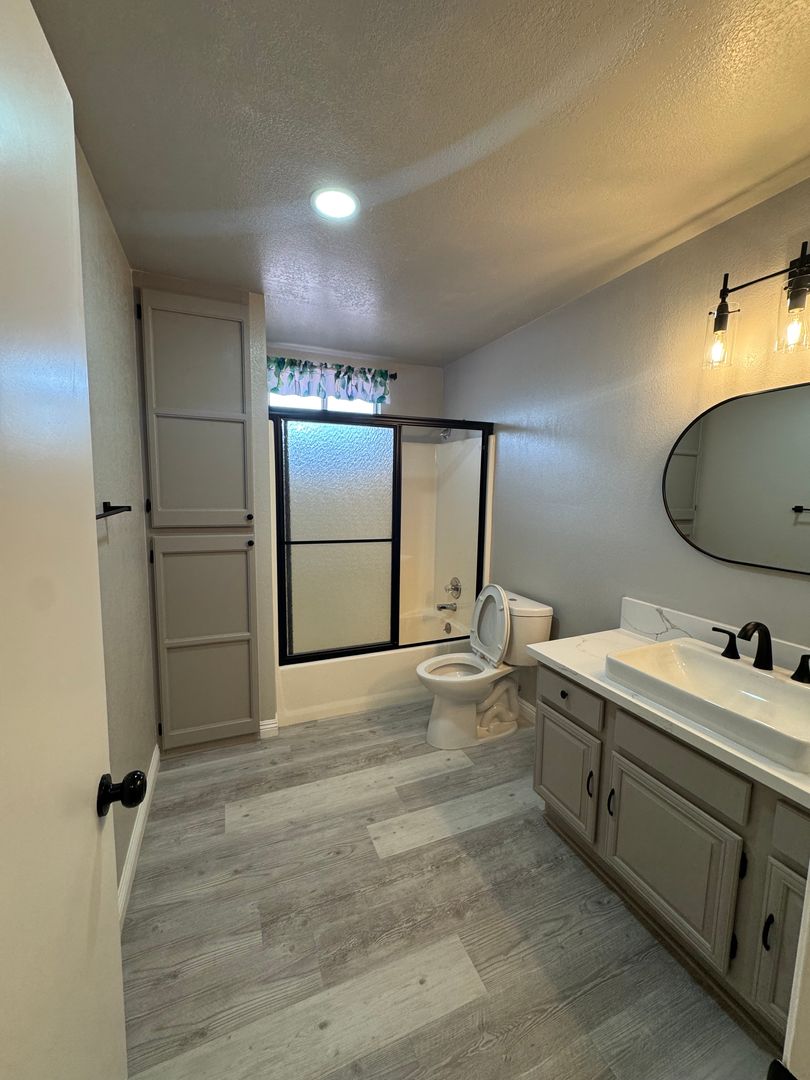 Fairly new remodel located in the highly desired Sitting Bull District of Apple Valley. This home features an upscale interior design and open concept living space, with solar panels for energy savings throughout the year. Bright open kitchen with quartz countertops, and shaker style cabinetry equipped with soft-close features. Convenient slide-in range island that also serves as additional breakfast bar seating. Split floor plan design with primary bedroom located on the opposite side to the remaining bedrooms in the home, including its very own private access to exterior back patio area. Spacious covered patio area for outdoor enjoyment and entertaining. Minimal maintenance required at front and backyards and RV Parking. Owner pays trash service.